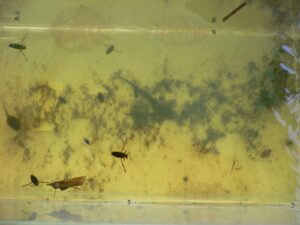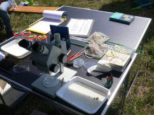 Die gefangenen Tiere wurden in Aquarien, Becherlupen und mit dem Stereomikroskop beobachtet und mit Hilfe eines Biologen näher erklärt.